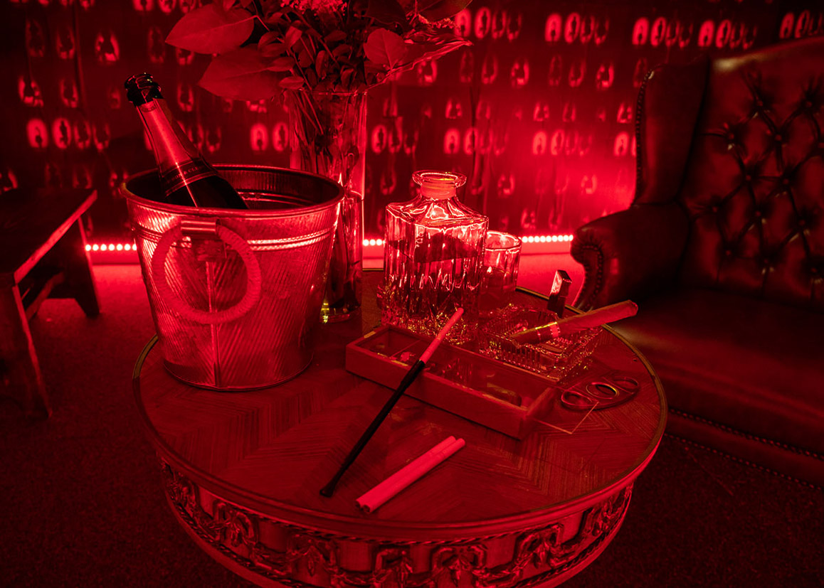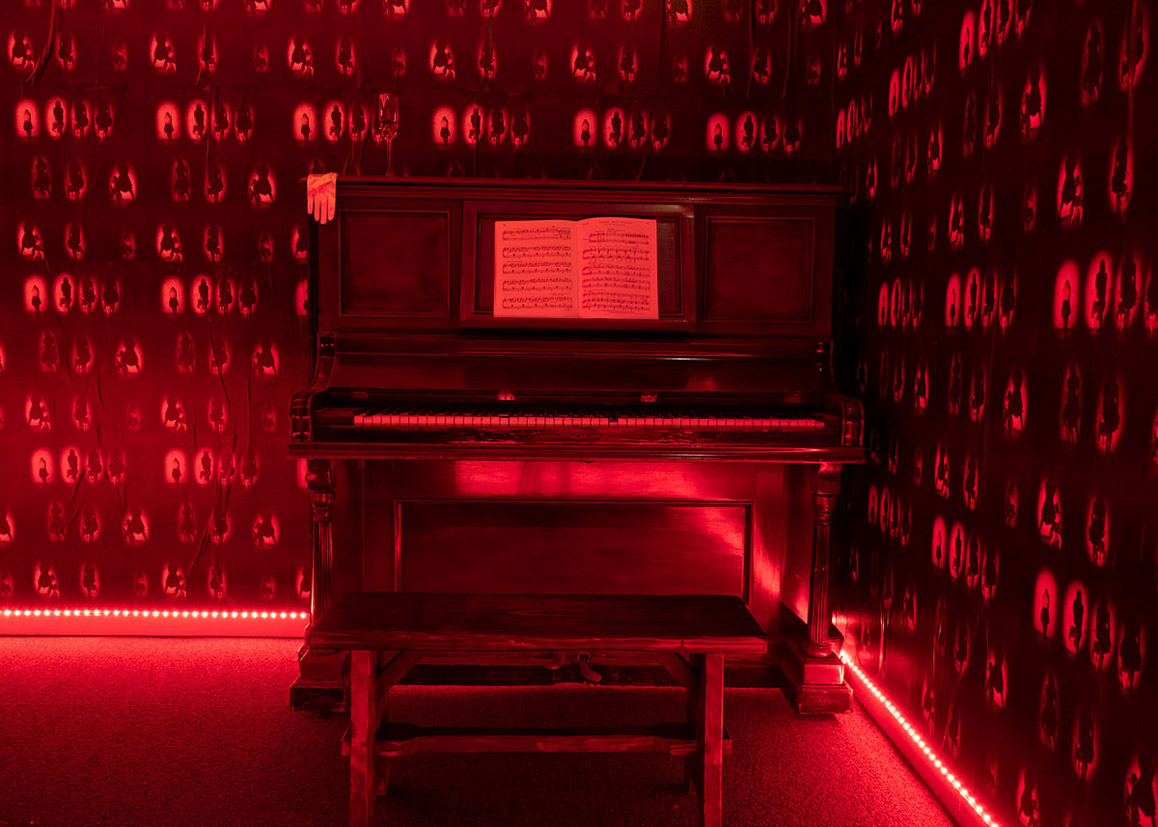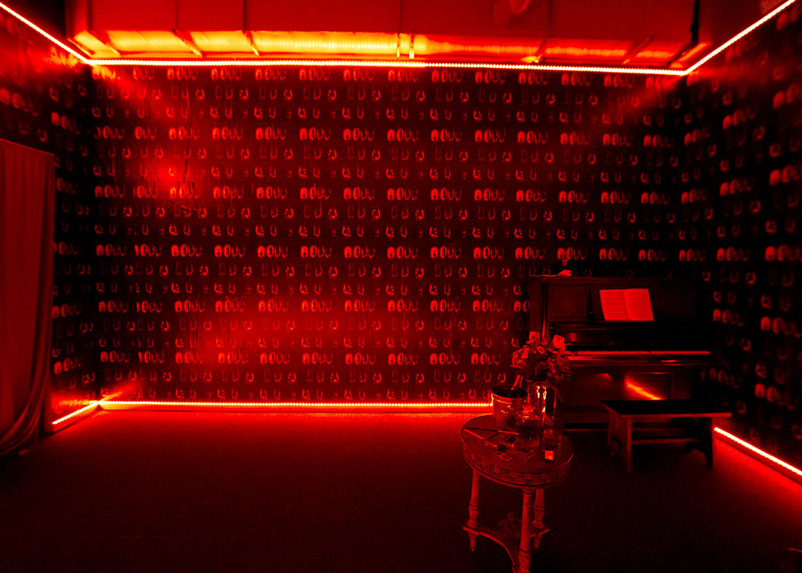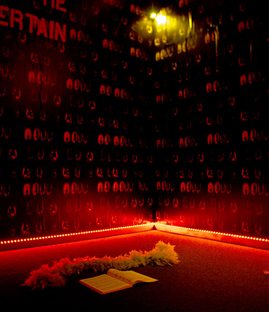 Act II of “Just Another Shadie Bitch” is an immersive installation examining performativity, social relationships, and scene-making. It engages scenographic tropes of burlesque and cabaret, translating elements of Greek tragedy, opera, and social drama into spatialized, performative interactions that reframe an audience’s perception and situate narrative and space in dialogue.